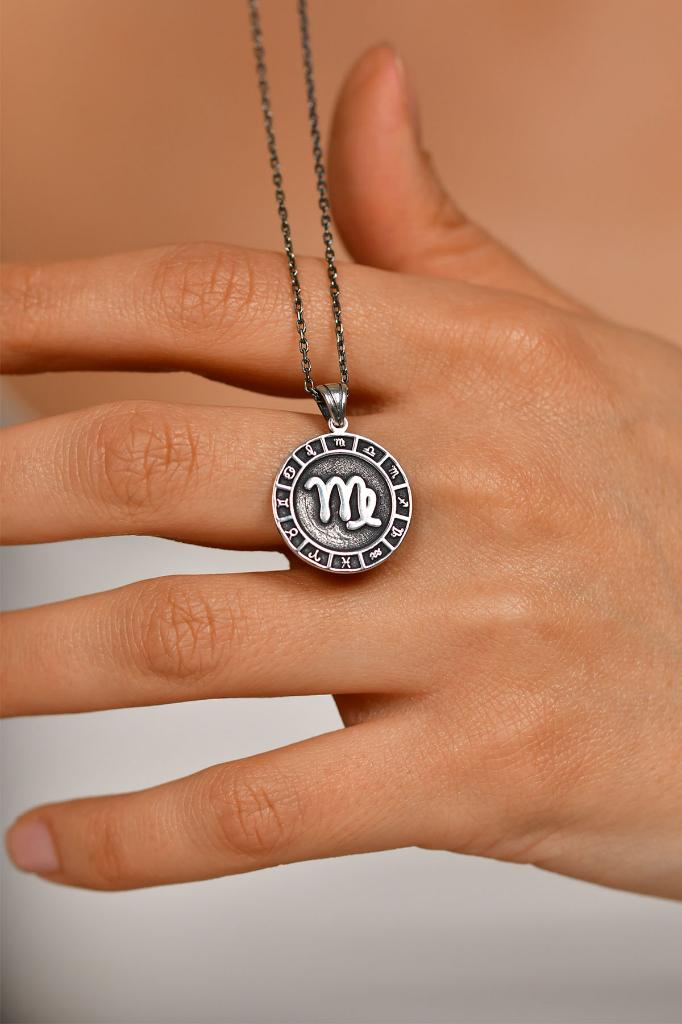 925 Ayar Başak Burcu Burç Çarkı Unisex Gümüş Kolye 45-55cm