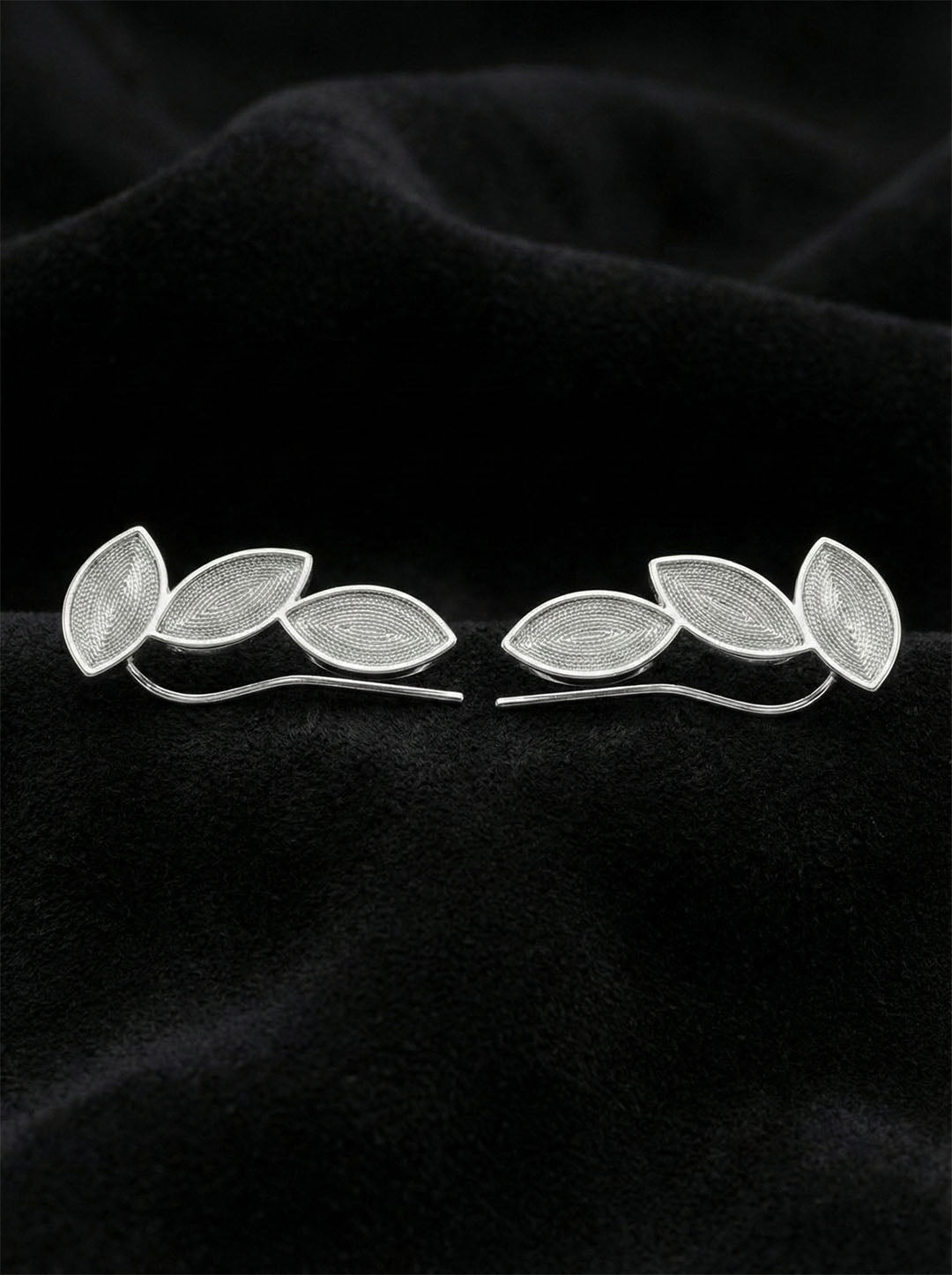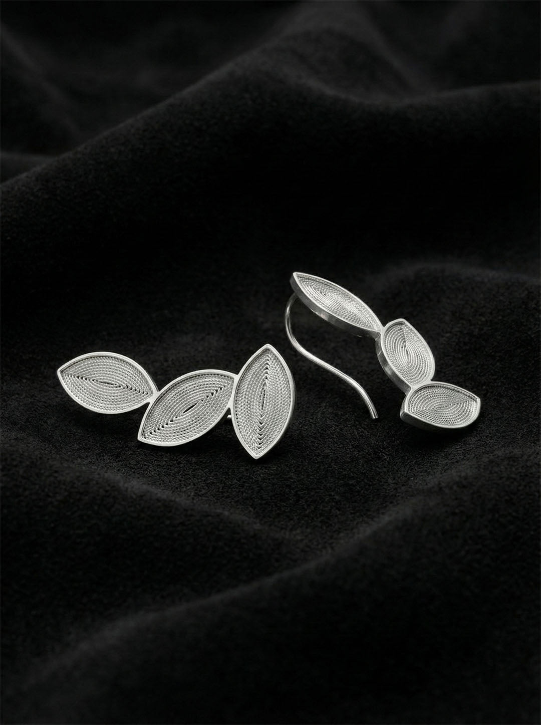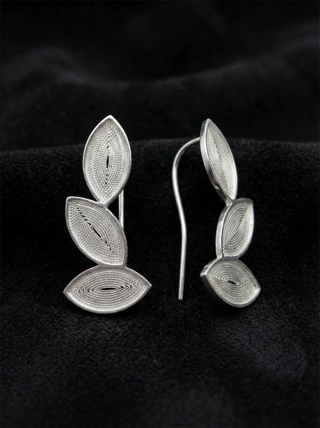 925 Ayar Elişi Telkari Gümüş Yaprak Motifli Yatay Sarmaşık Küpe