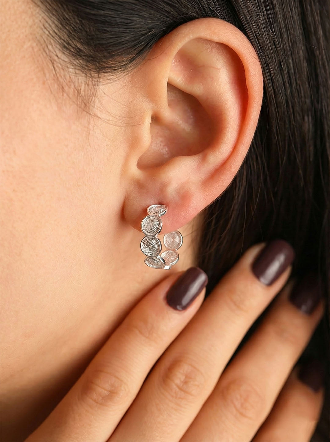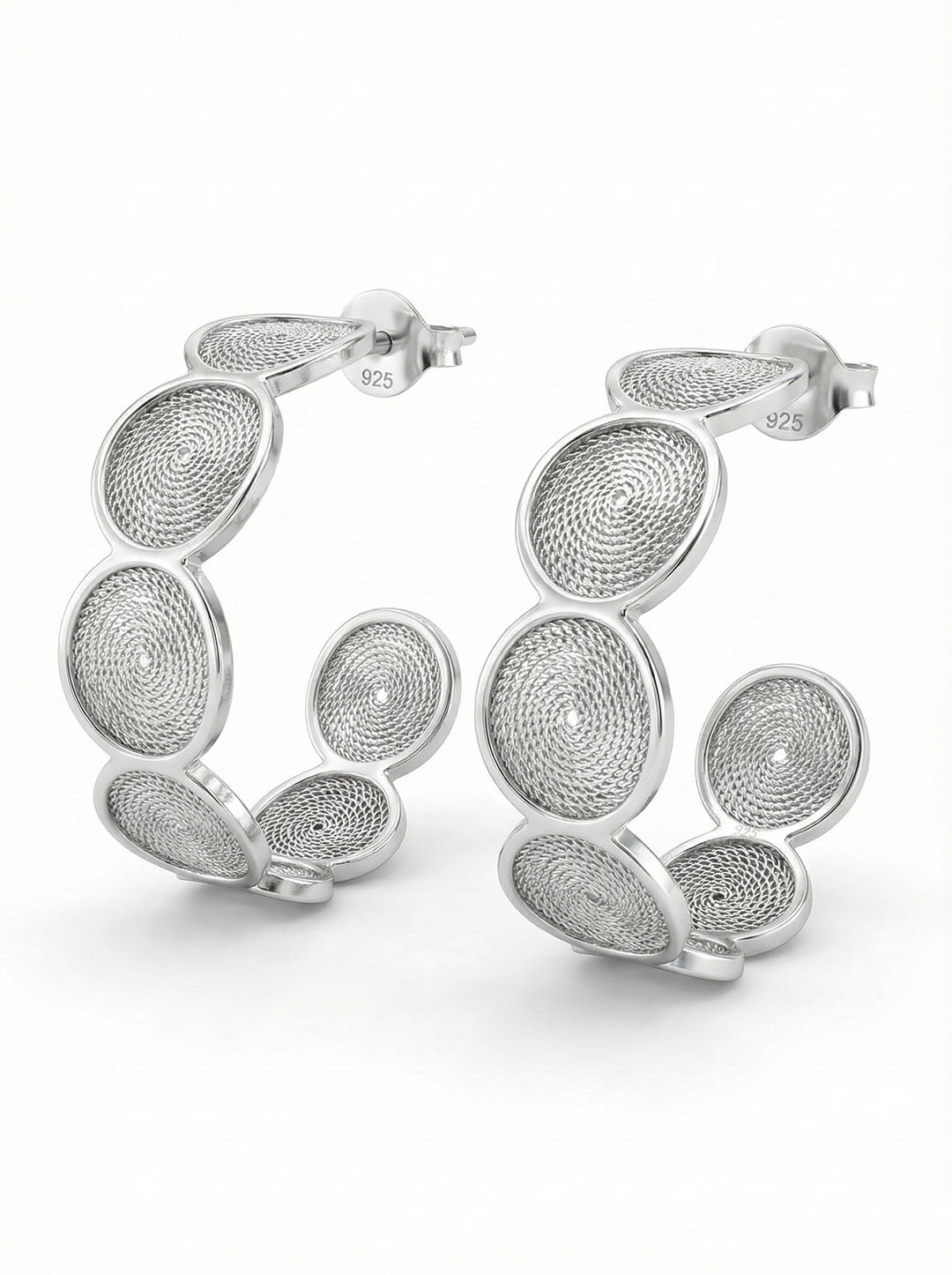 925 Ayar Elişi Telkari Gümüş Yuvarlak Desenli Halka Çivili Küpe
