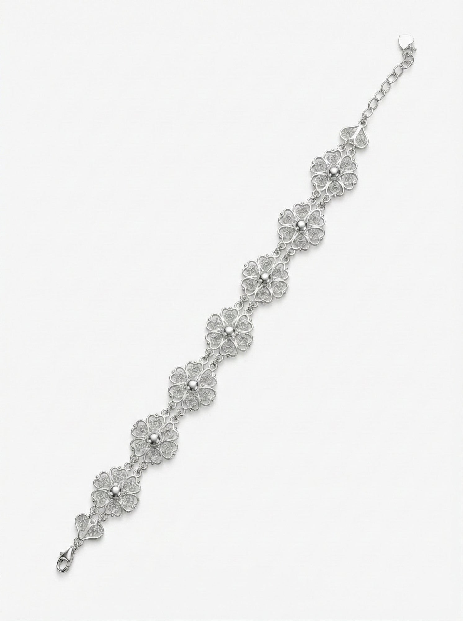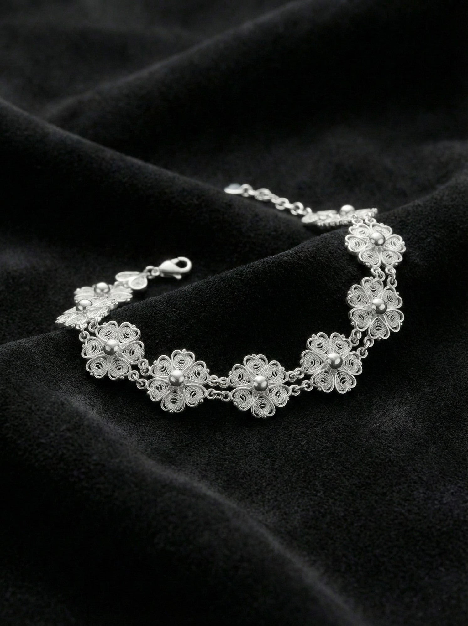 925 Ayar Geleneksel Telkari Elişi Çiçek Motifli Sıralı Gümüş Bileklik (Ayarlanabilir)
