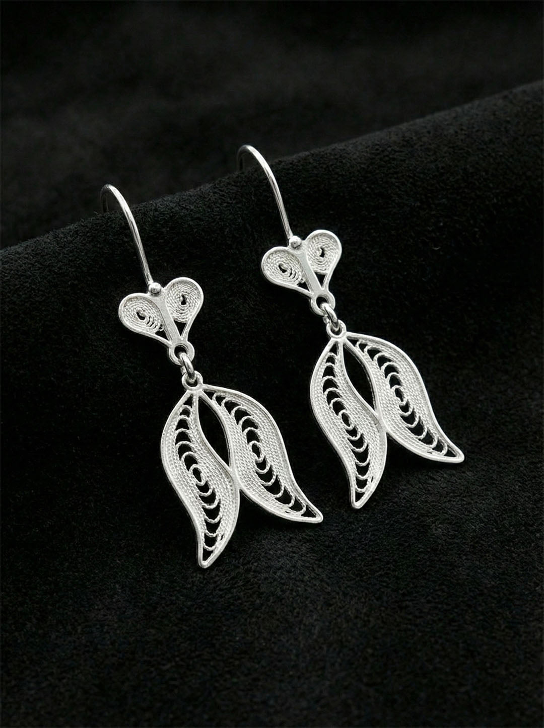 925 Ayar Geleneksel Telkari Elişi Sanatı Gümüş Lale Motifli Sallantılı Küpe
