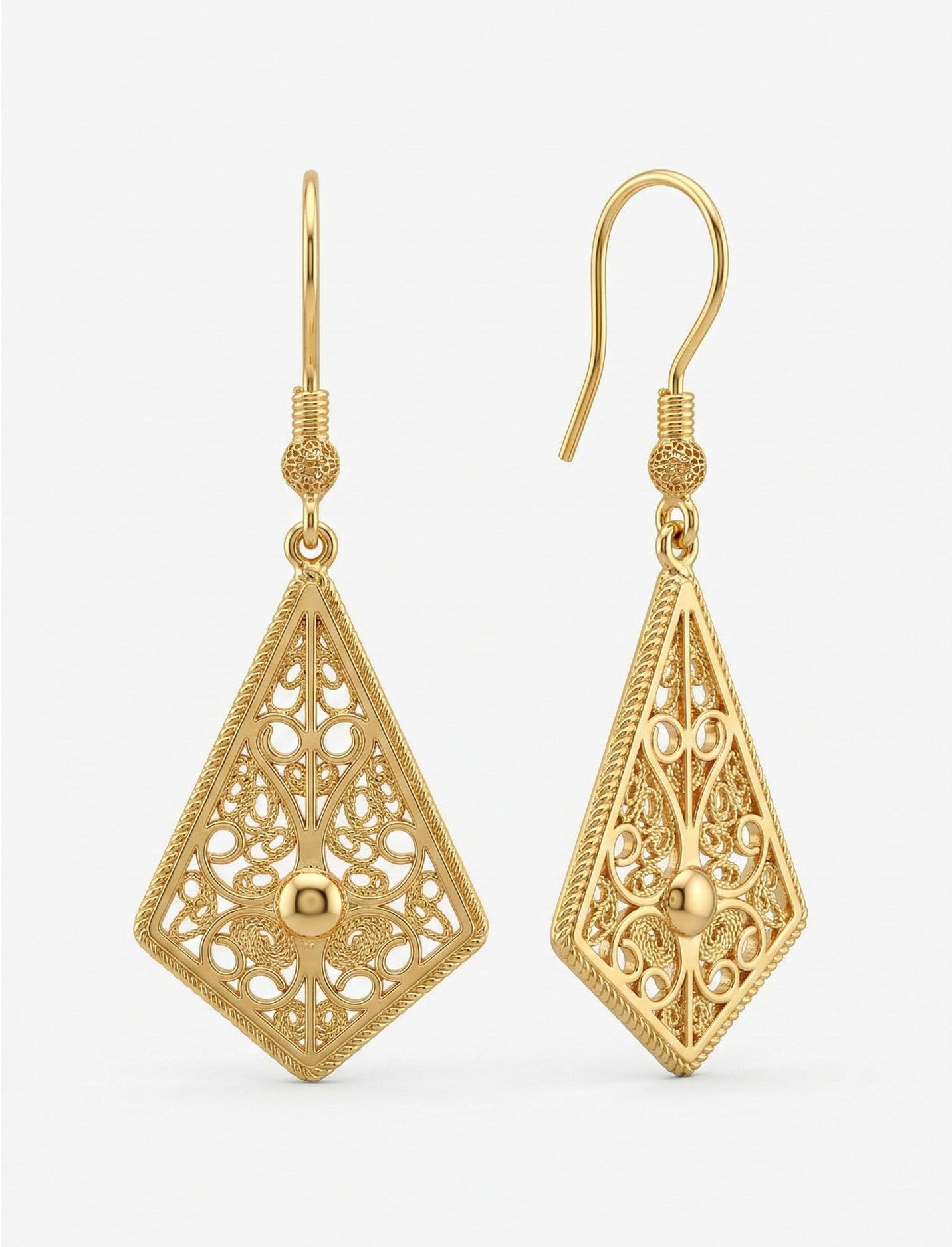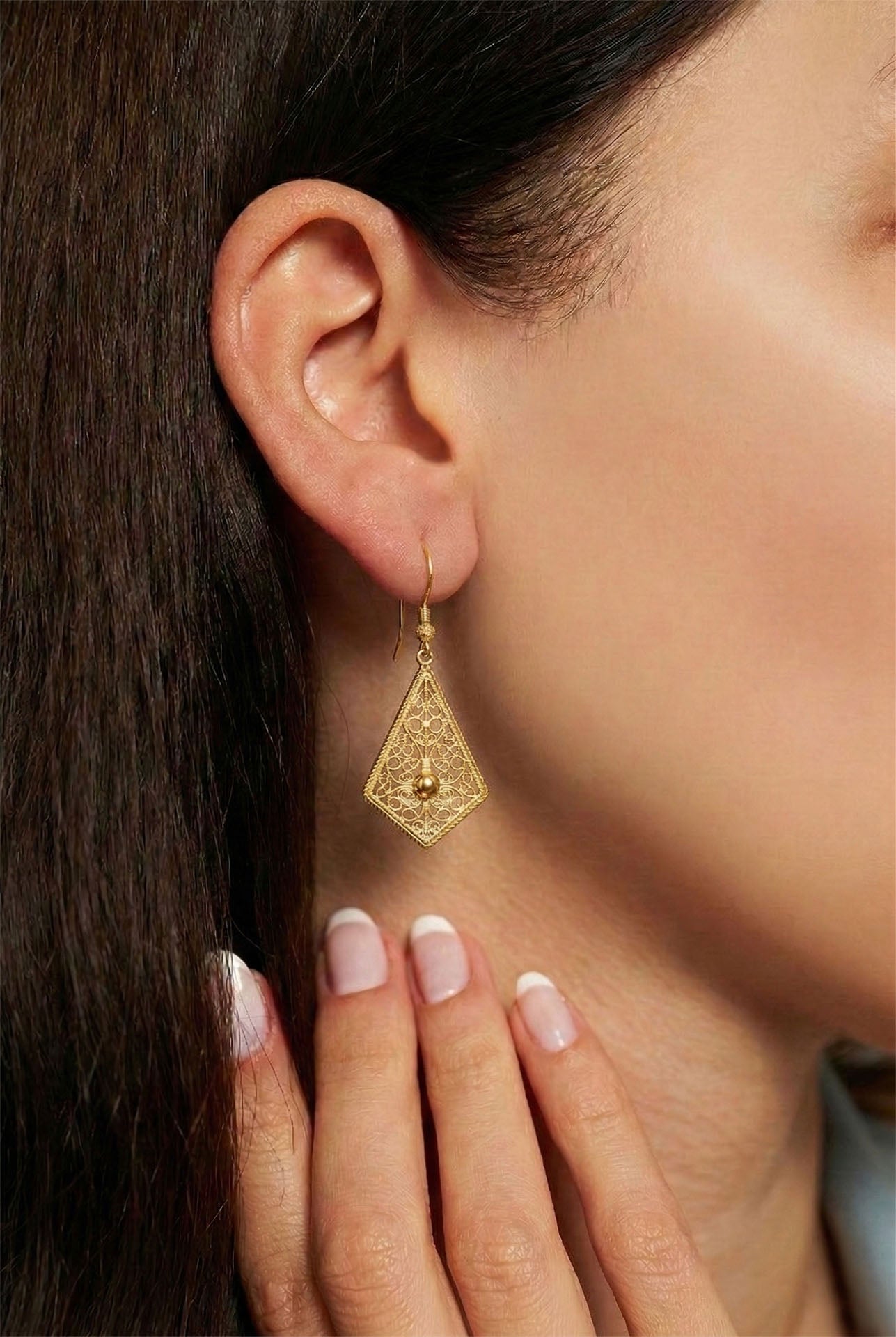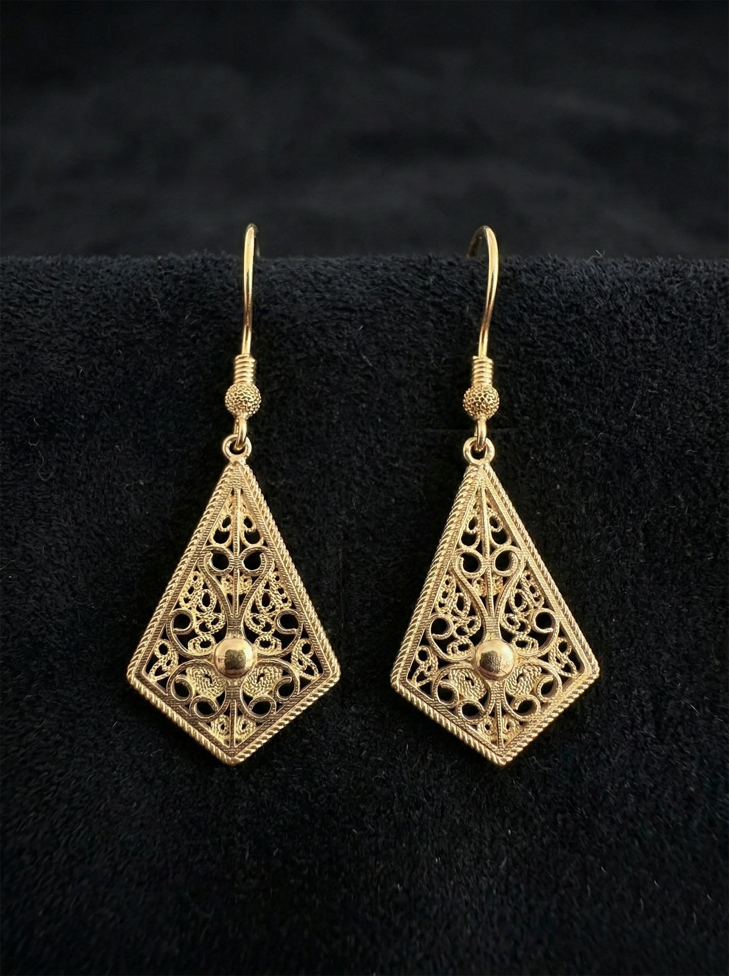 925 Ayar Gümüş Altın Kaplama Geleneksel Telkari Baklava Dilimi Kancalı Küpe