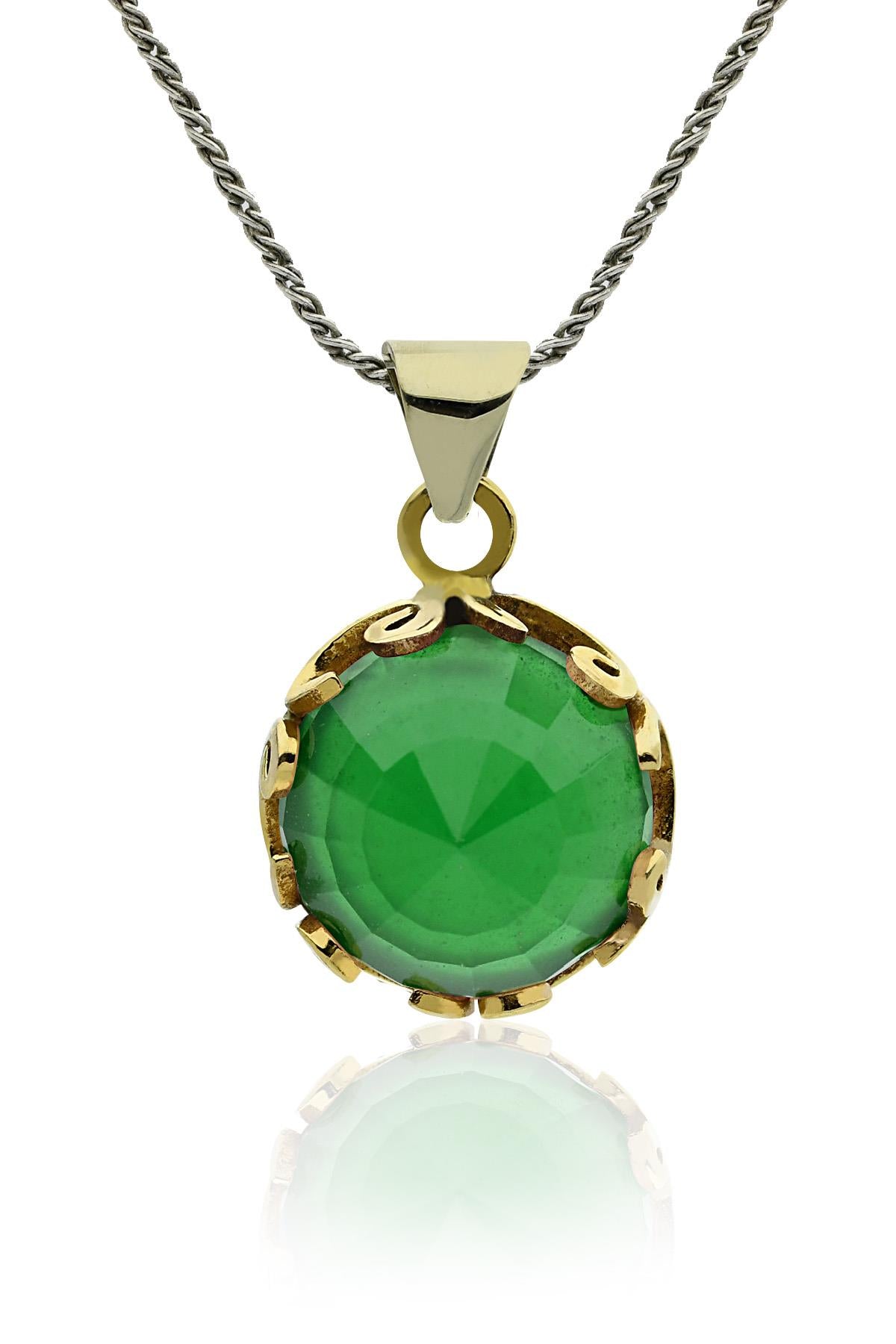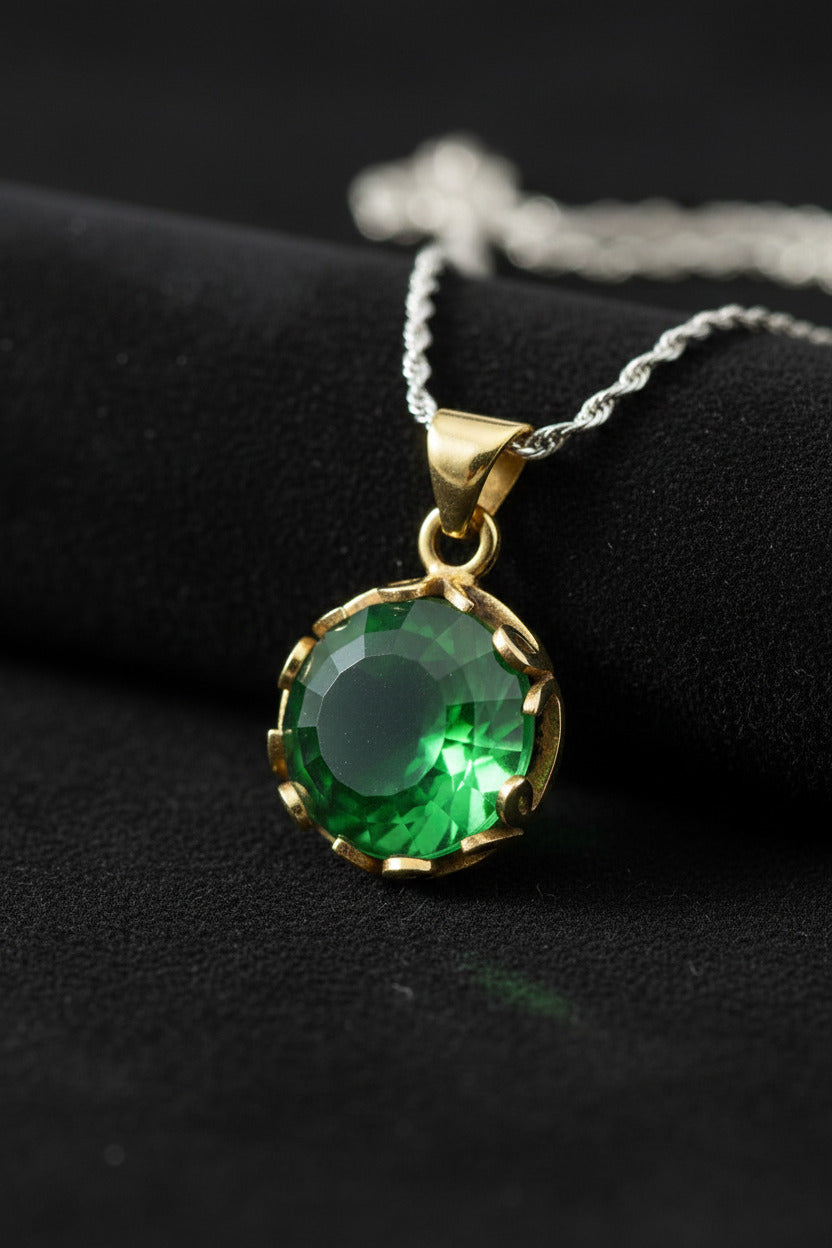 Zümrüt Taşlı Vav Harfi Motifli Otantik Gümüş Kadın Kolye