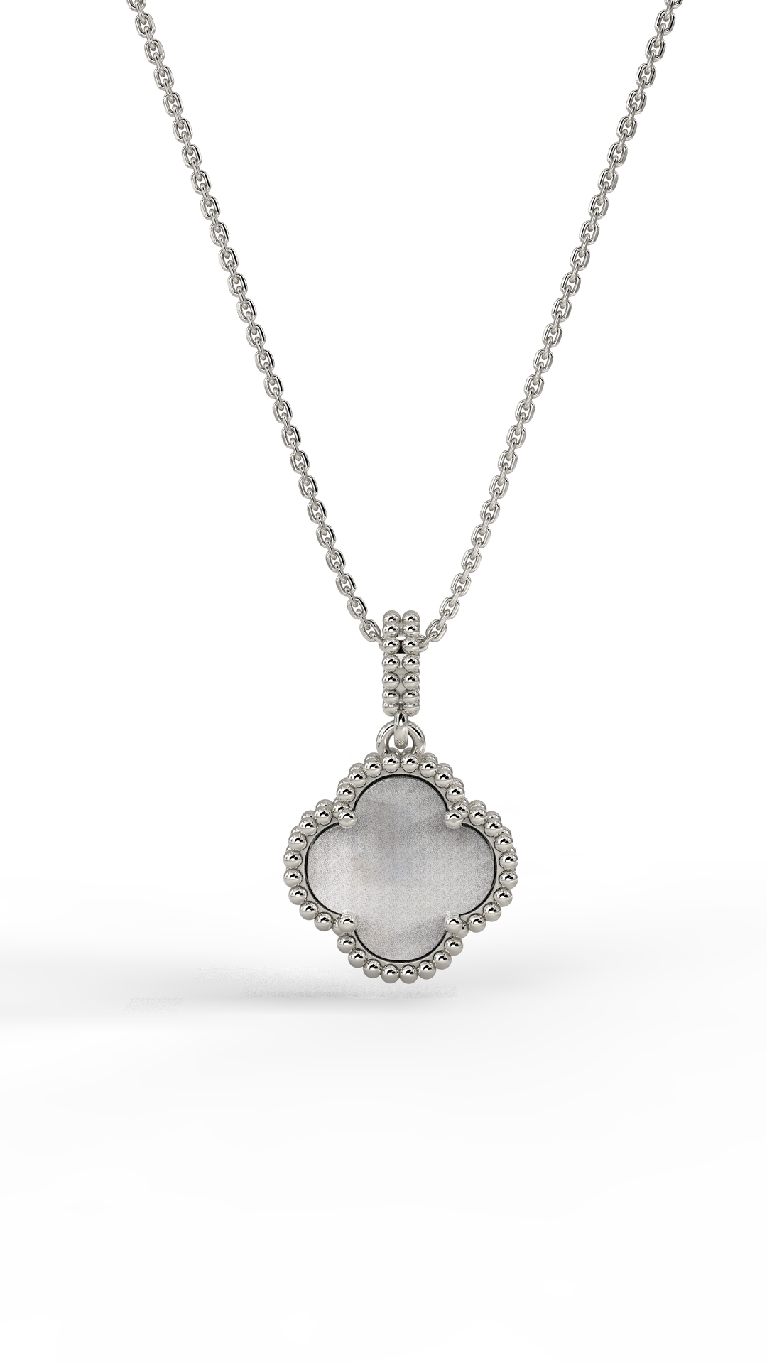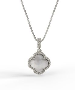 925 Ayar Beyaz Sedef Taşlı Rodyum Van Cleef Yonca Gümüş Kolye